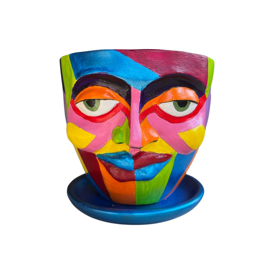If you're looking for an eye-catching pot with handmade and unique design, you're in the right place! Decorated with a bold-lipped character and a slightly whimsical expression, this pot stands out with vibrant rainbow colors.