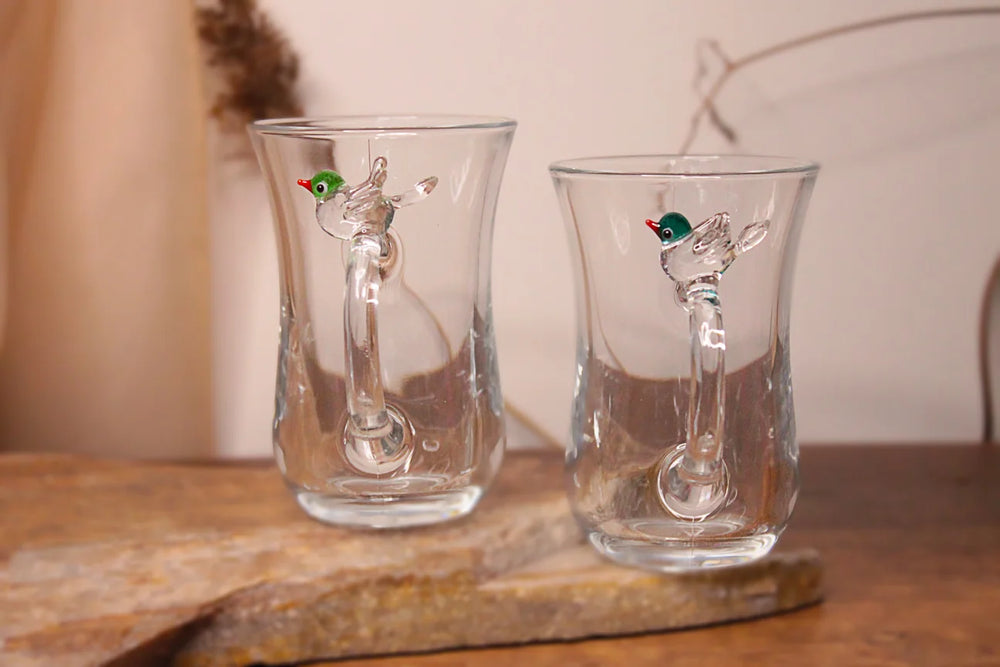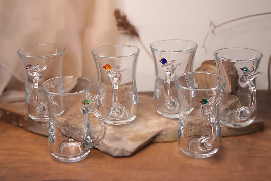 Bird figures are completely handmade using the flame cam technique.