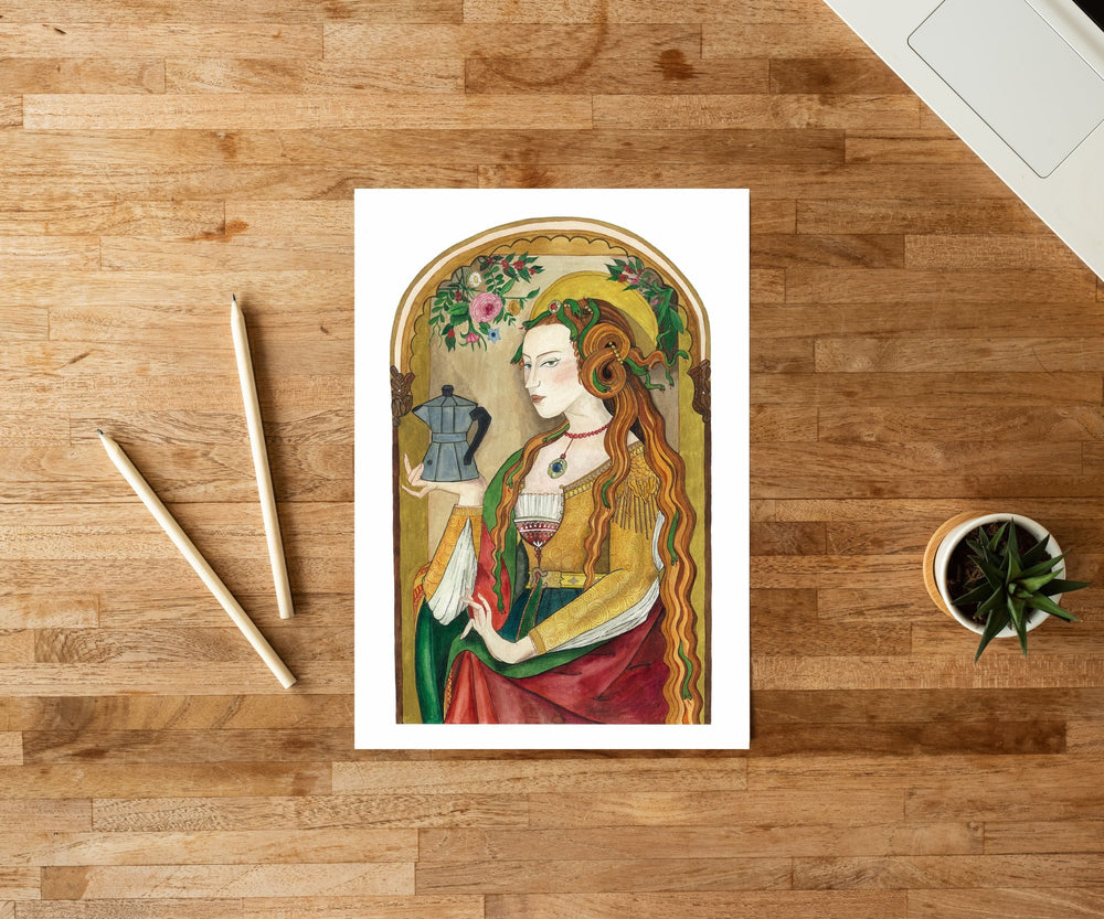 A watercolor interpretation inspired by the "Cestello Annunciation" by the famous Italian Renaissance painter Sandro Botticelli.