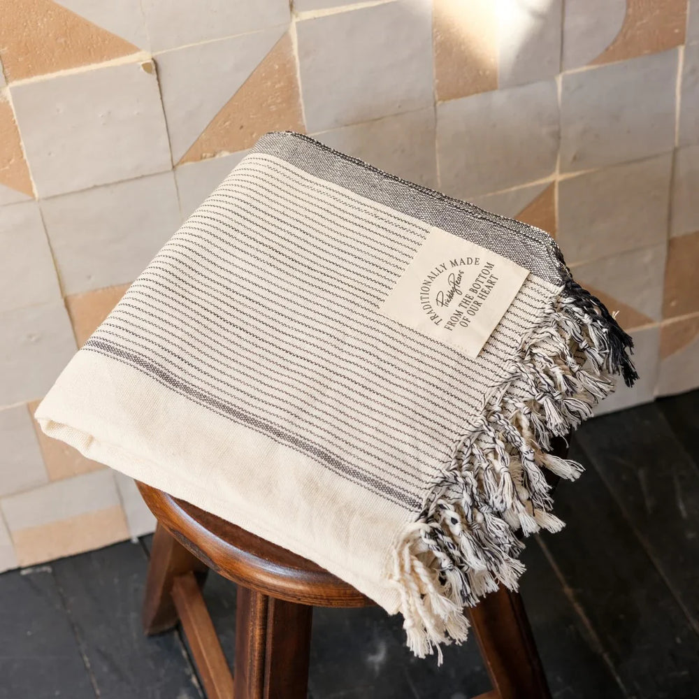 Our pesthemals are woven using traditional methods on two separate types of looms, wooden looms and ‘Kara Tezgah’ looms. While the fabric is completely hand-woven on the wooden loom, on the ‘Kara Tezgah’ looms the entire weaving process is realised by human hands except for the shuttle and foot-treadle movements. Weaving culture is present in every region of Anatolia. Unfortunately, today these weaving traditions are being lost to a large extent as a result of the industrialisation of the textile sector in response to the demands of fast consumption habits. As Prickly Pears, we aim to carry this forgotten tradition of Anatolia forward to the next generations. That's exactly why our hand-woven products are not just something you buy, they are our past and our future