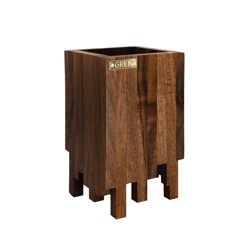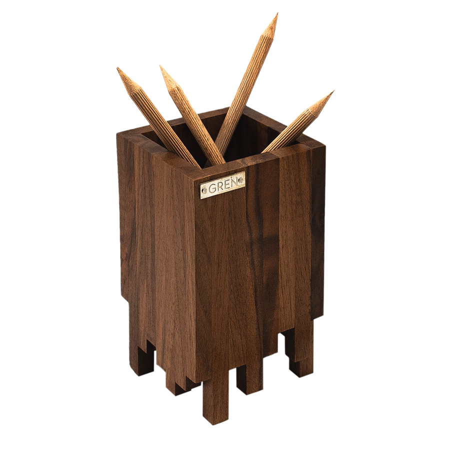 Code pencil holder adds to the distinct pattern of walnut with its fractured shape. We crafted 'Code' with care, to bring the warmth of natural wood to your working environment.