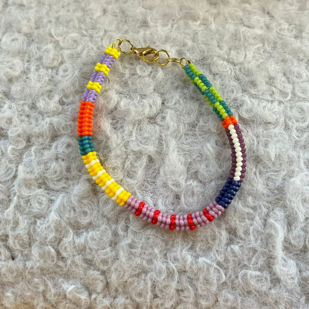 Handwoven high-quality Japanese and Czech glass beads finished with gold-filled clasp. Avoid to wear while bathing, swimming, working out, or during any rough activities.