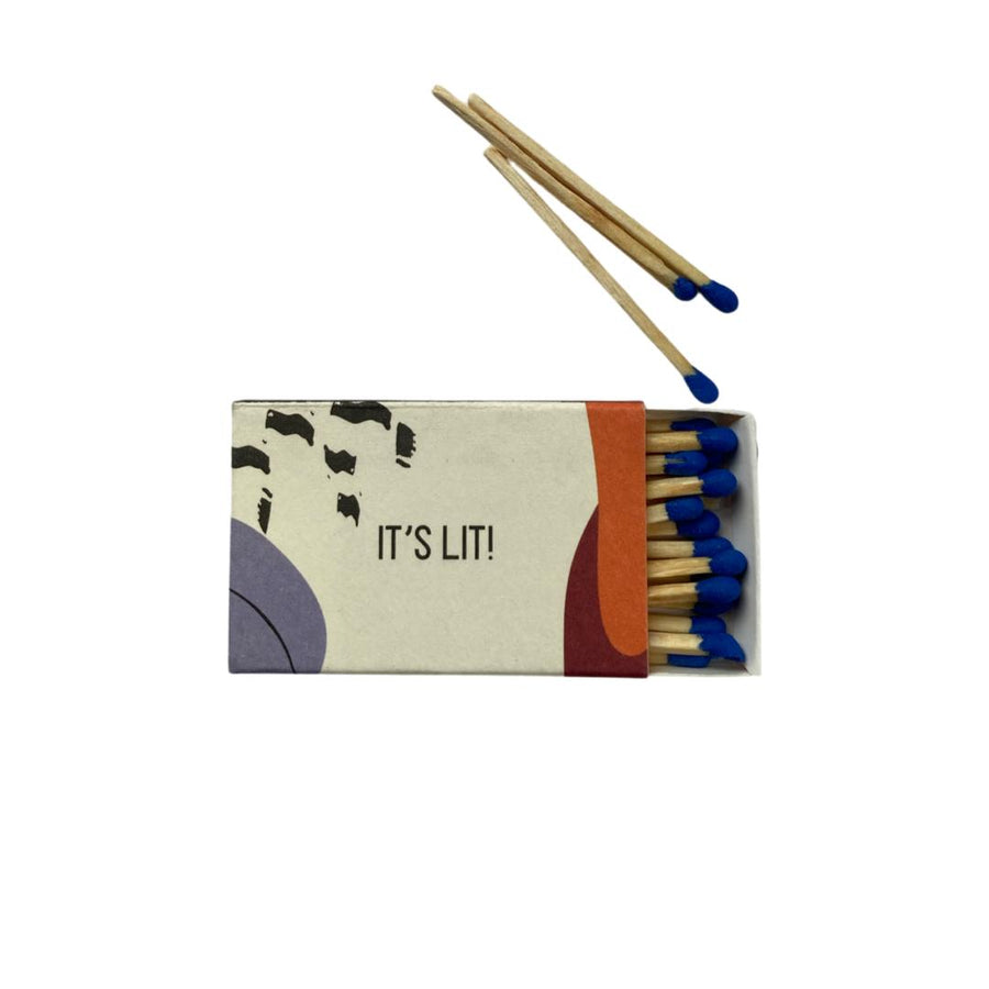 Enjoy lighting your favorite candles with these matches. Gift this matchbox with the motto 'It's Lit' to yourself or someone you love! It contains approximately 18-20 pieces of 5cm long matches. It is odorless. The match tip color is blue.