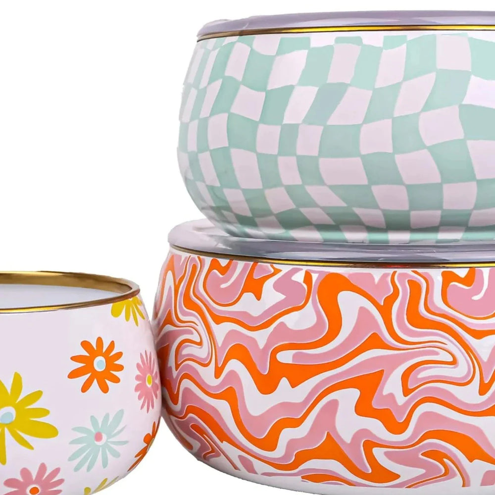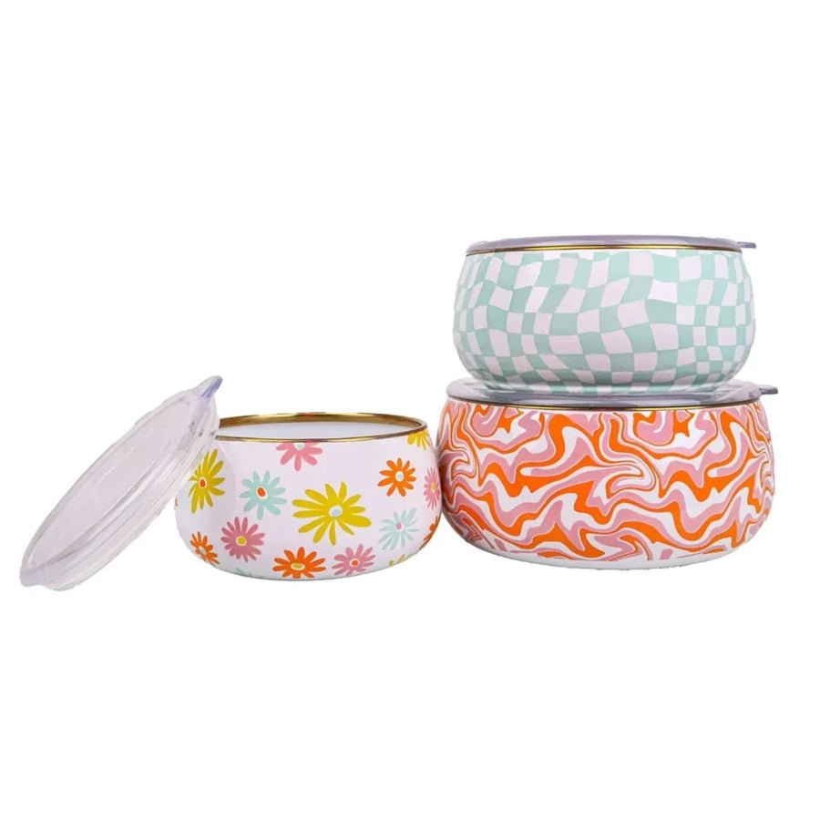 Retro Hippie 3 Pcs Enamel Chubby Storage Container Set