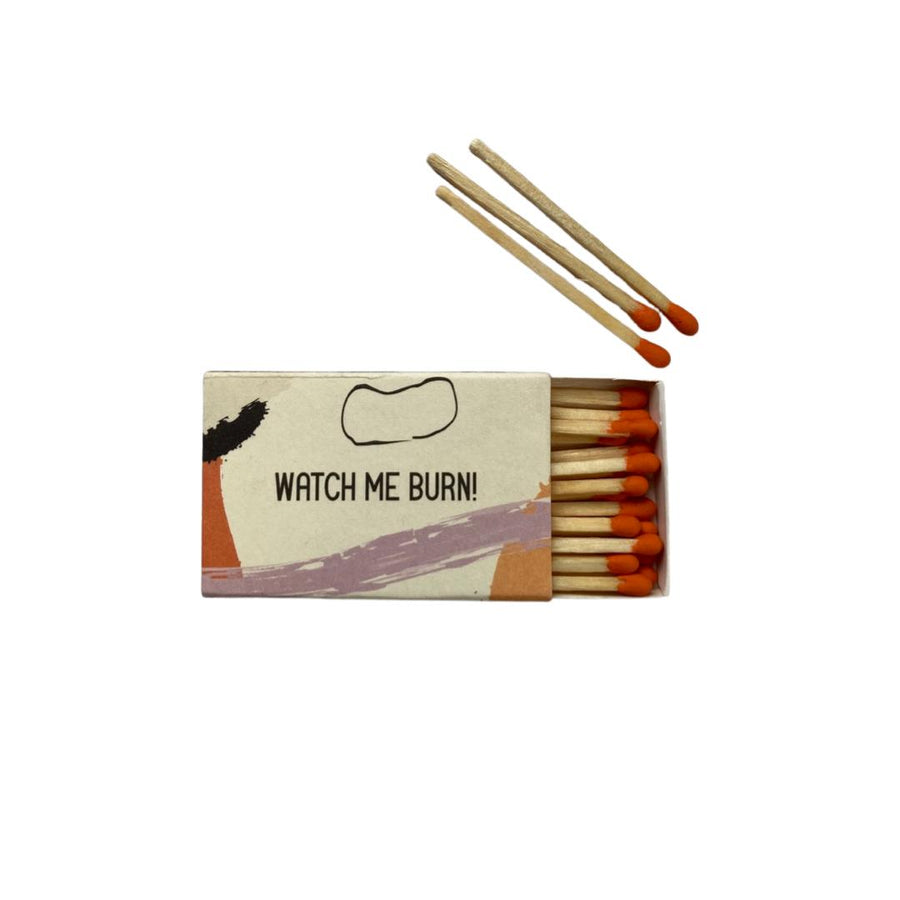 Enjoy lighting your favorite candles with these matches. Gift this matchbox with the motto 'Watch Me Burn' to yourself or someone you love! It contains approximately 18-20 pieces of 5cm long matches. It is odorless. The match tip color is orange.