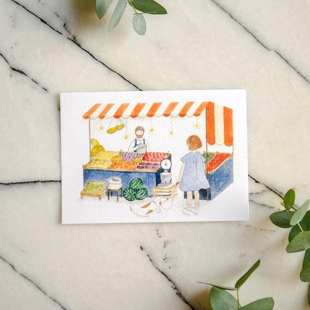 Watercolor Art Postcard Neighborhood Series Greengrocer