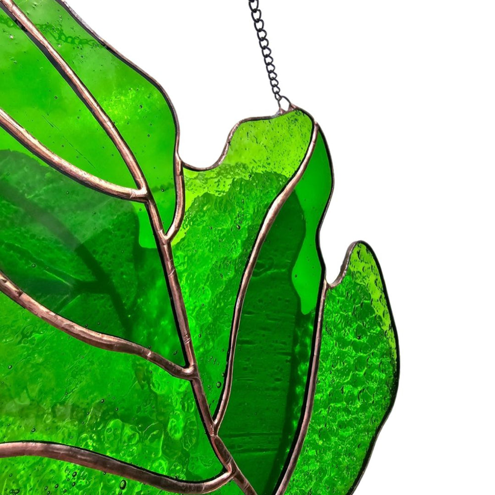 Dimension: 21X21cm Handcrafted mordern suncatcher is made by cathedral glass. All hand made. Soldering detail is finished by bronz patina.