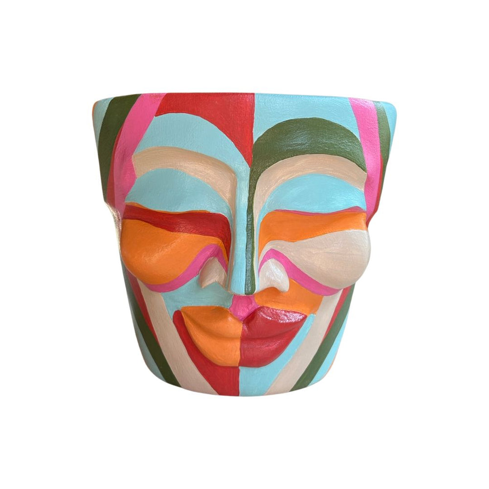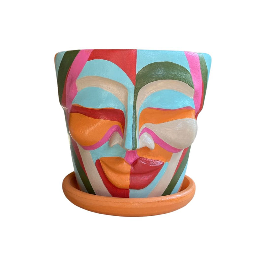 Do you want to add some color to your home or office? This handmade flower pot may be just what you're looking for! This flower pot, dominated by the orange color, will help you create an energetic atmosphere. The character face design on it will always make you smile.