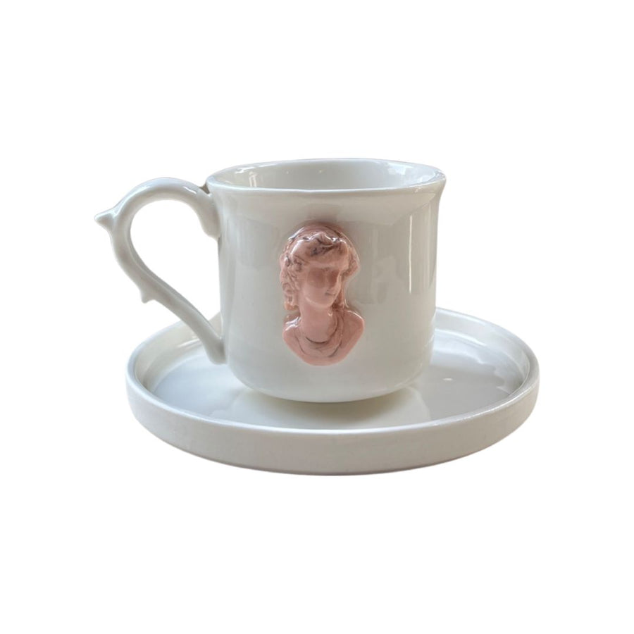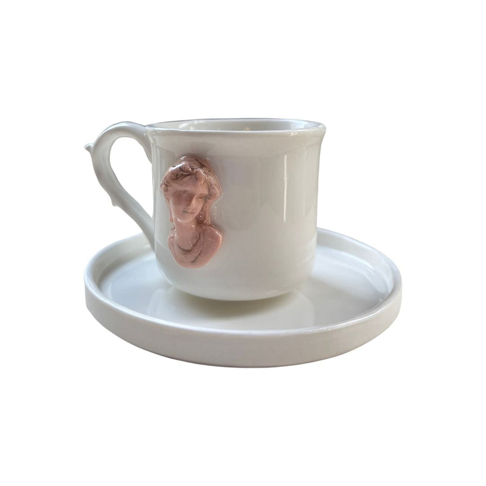 Handmade porcelain cup is sent as a set with its plate. It is produced using food grade glazes.