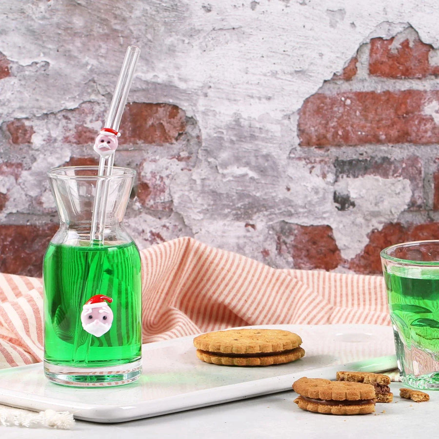 Santa Claus Figured Serving Carafe and Glass Straw Set