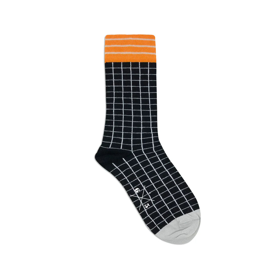 GRID BLACK Black White Orange Square Patterned Unisex Socks