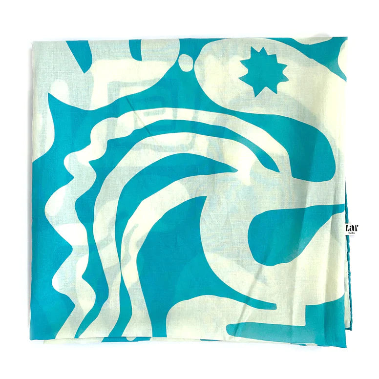 +135 x 135 cm Turqouise and White Cotton Pareo