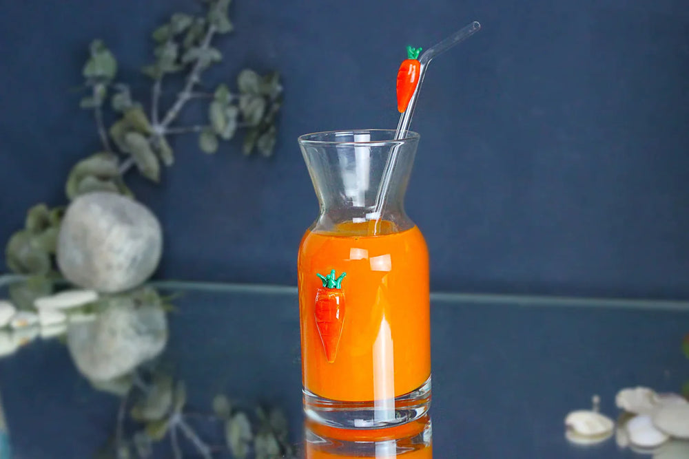 Carrot Figured Presentation Carafe and Glass Straw Set
