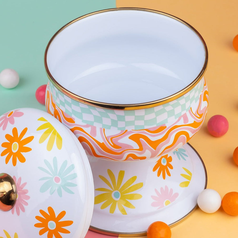 It represents the transition between generations and winks a little at the nostalgic spirit of enamel.